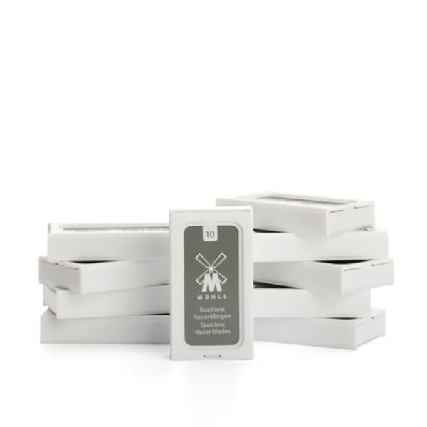 With exemplary in-house production and great designs, Mühle have developed into one of the world's leading providers of high-quality accessories for wet shaving. MÜHLE double edge razor blades are made of high quality stainless steel which is honed to precision. Compatible with all safety razors, these blades will deliver a close, comfortable shave.