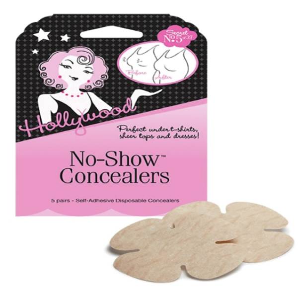 - PETAL NIPPLE CONCEALERS – Hollywood Secret No. 5, these self-adhesive nipple concealers are petal shaped with a soft center to create a smooth appearance. Includes 5 single-use pairs for many different occasions.