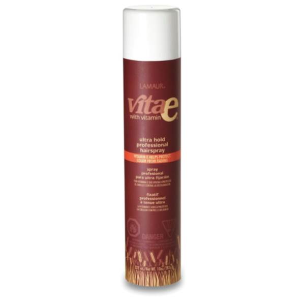 Vita E Ultra Hold Professional Hair Spray is an ultra hold aerosol hair spray containing Vitamin E to shield and help protect the hair through sun, wind or humidity.