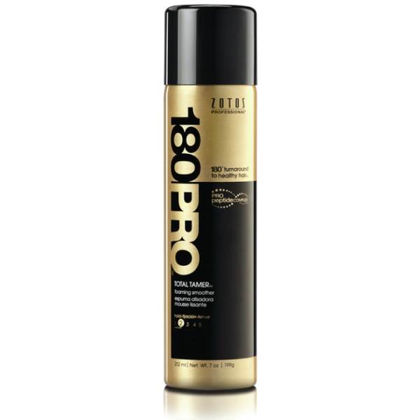 - 180PRO Total Tamer Foaming Smoother is formulated with Pro-Peptide Complex to provide a touch of hold and long-lasting smoothness to frizzy, unruly hair