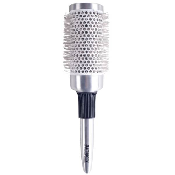 This ultra-lightweight aluminum handle brush has been designed for the full-time stylist who seeks all day comfort and ergonomic support, while offering innovative styling solutions. The ionic nylon bristles smooth the hair, eliminating frizz, fly-aways and static; making hair more manageable and preventing breakage and split ends. A seamless ceramic coated barrel captures the heat and accelerates the drying time, while the nonslip rubber grip provides better styling control. The Alumilite is 30% lighter than the standard thermal brush.
