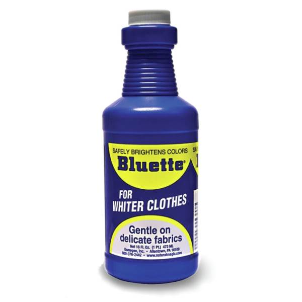 Bluette functions as a laundry whitener because a trace of blue in the wash will enhance white and light-colored articles, making them appear whiter and brighter. It works because of an optical illusion called irradiation. Try Bluette for whiter whites. It is safe and gentle even on delicate fabrics. Laundry bluing is added to the detergent at the start of the wash cycle - unlike other laundry products that are added during the final rinse cycle.