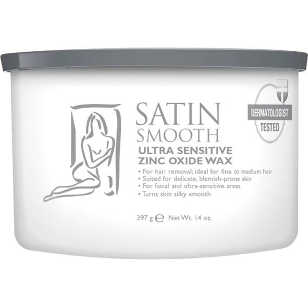 Clients with sensitive skin need a depilatory wax that protects them from irritation or rashes. Our Satin Smooth Zinc Oxide Wax is specially formulated for acne- or blemish-prone skin, fair complexions, thin or young skin. Recommended for the facial area and sensitive parts of the body, it is the professional’s wax of choice for fine to medium hair and any skin type that requires extra-gentle treatment. Formulated with titanium dioxide, a natural buffer that eliminates the need for talcum powder, and propolis, a natural botanical substance.