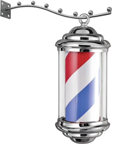 K-Concept Chrome Plated, Hanging Barber Pole Energy efficient bulb Give your shop a bit an old classic look This old-fashioned barber shop pole spins and lights up to attract customers