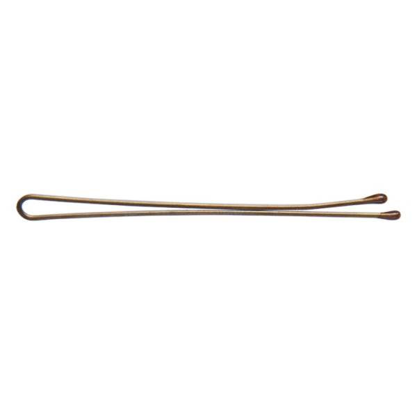 2.5 inches jumbo bob pins for hair. Great for up-dos. Simulated rubber tips. Flat style. Bronze. 100 per tub.