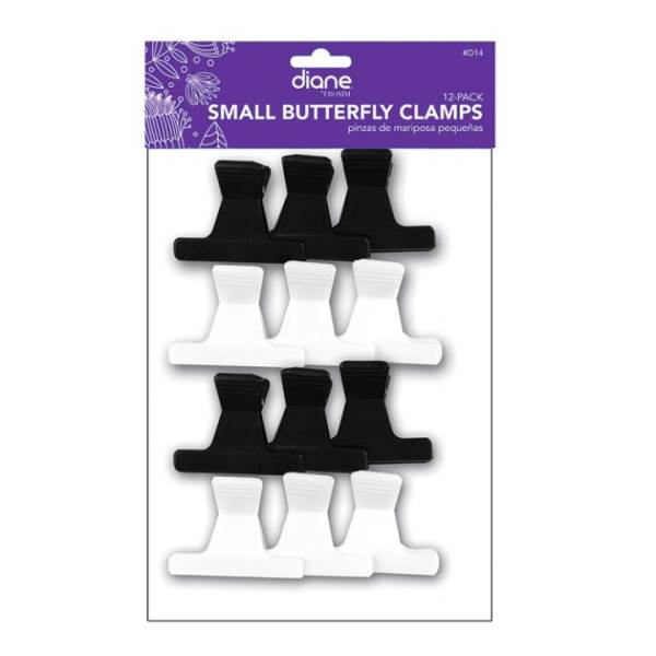 2.25 inches small butterfly hair clips. Teeth hold hair securely in place. Great for securing hot rollers in hair and sectioning. Assorted black and white. 12 per bag.