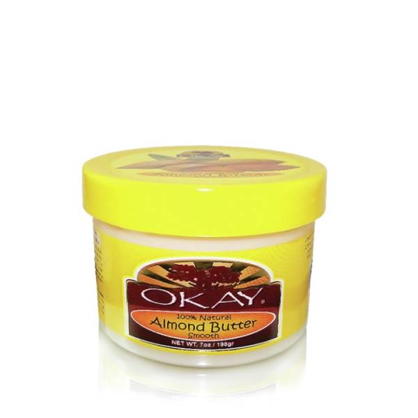 - Okay 100% Natural Almond Butter nourishes and soothes the hair cuticles allowing for a stronger and thicker growth. Massaging the hair with Almond Butter will add shine and control breakage.
