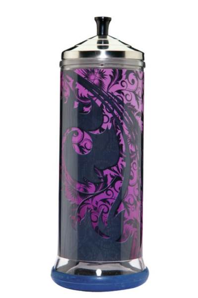 An Entirely NEW Concept In Salon Décor. SalonSkins edgy, eye-catching designs made to cover the surface of your BARBICIDE disinfectant jar. 15 designs to choose from.