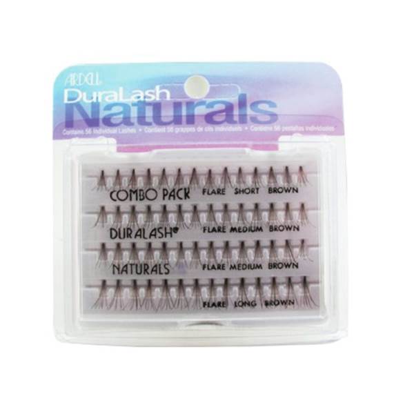Ardell 65064 DuraLash Naturals Combo Brown. DuraLash individual lashes are the closest thing to natural lashes ever developed. These exclusive knot-free individual lashes are permanently curled, waterproof, easy to apply, and comfortable to wear. They're so natural you forget they're not your own, and they can be worn for up to 6 weeks at a time. One DuraLash package contains 56 lashes.