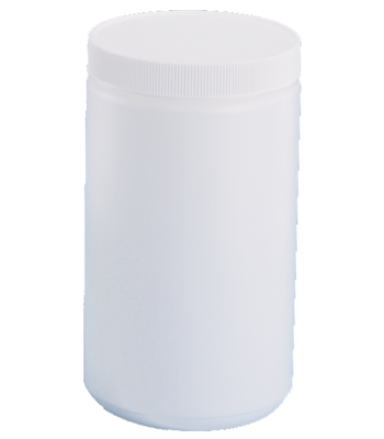 White HDPE jar with white, lined lid. White plastic reduces oxidation. Great for custom imprinting.