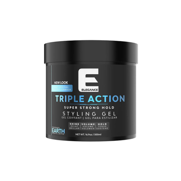 The triple-action hair gel provides a stronghold, extreme volume, and attractive shine while providing a refreshing fragrance. This styling hair doesn't leave your hair oily or with residue.  Triple action super strong hold hair gel can be used with all types of hair.