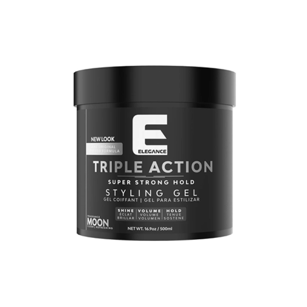 Our triple action hair gel provides a strong hold, extreme volume, and attractive shine while providing a refreshing fragrance. This styling hair doesn't leave your hair oily or with residue. Triple action super strong hold hair gel can be used with all types of hair.