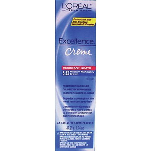 L'Oreal Excellence Creme Resistant Gray Haircolor covers resistant gray with no pre-softening required. Long-lasting permanent haircolor. L'Oreal Excellence Creme Resistant Gray haircolors have patented 'Gray Seeking Dyes' that penetrates gray hair to deliver extra concentrated, long-lasting color that ensures coverage of the most resistant gray hair. The Non-drip creme formula gives the best possible conditioning for your hair.