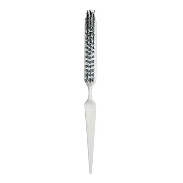 The White Denman Dress-Out hairbrush has a slender pin tail that makes it the perfect sectioning tool. Its fine tip is ideal for taming stray strands when creating a flawless up-do. The narrow body of the brush carries three rows of high quality nylon bristles that provide grip and control, while the lightness of this agile brush defies its strength which makes it ideal for use on wigs and extensions