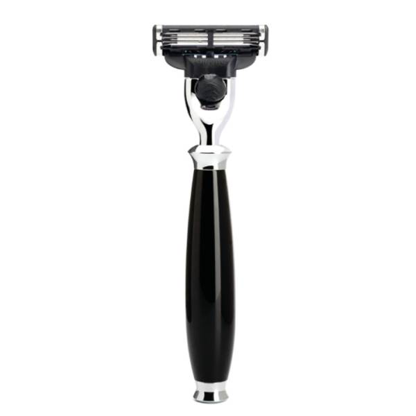The Material - High-grade resin High-grade resin is a high-quality synthetic material, the surface of which is processed and refined separately. The material is ideal for exclusive accessories and writing implements because it facilitates a broad spectrum of modern and classical designs in many attractive colours. To begin with, the aesthetic basic shapes for brush and razor handles are turned out of solid rods. Then each individual work piece is polished in several passes to give the surface its special gleam. This processing method lends the models a pleasant feel and secures their beauty for many years to come. Without chrome the world would forfeit a lot of its lustre. In the finish used for our wet shaving accessories it demonstrates its best qualities: The material is corrosion-resistant, very long-lasting and has a luxurious, alluring lustre. When contrasted with this, the colours and shapes of other premium materials are shown to their very best advantage. The Razorhead - Gillette Mach3 The Gillette Mach3 system is one of the most frequently used shaving systems in the world. Three progressively spaced blades guarantee a comfortable and close shave. The blades are available from retailers everywhere. Wet shave razors from MÜHLE are compatible with the systems Gillette Mach3 and Mach3 Turbo.