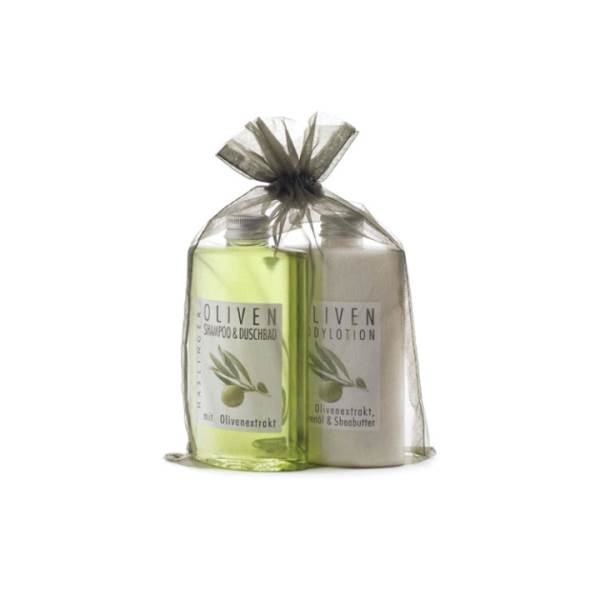 Olive Shampoo & Shower Gel and Bodylotion in an Organza Bag 2x200ml.