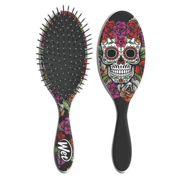 The Sugar Skull Detangle gives you hair to die for! Made with our exclusive, thin and strong yet flexible, our IntelliFlex bristles are firm on one stroke but give on the next. Brush out tangles effortlessly, with no more pulling, tugging or pain. The result: healthier hair, with no tangles, no split ends or hair loss. Wet Brush(R) makes detangling a lot more comfortable for your hair and your hand. Our ergonomically designed handle provides stylists with a comfortable grip that makes this brush a stylist's best friend.